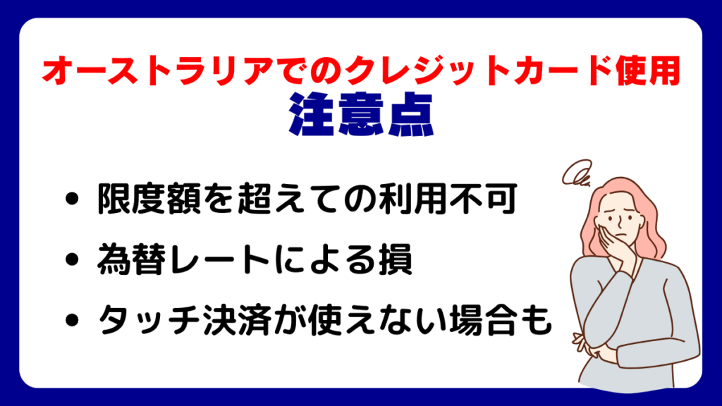 一方で、限度額超過や為替レートの変動、一部現金のみ対応の店舗など注意点もあります。この記事を参考に、安心かつ快適にオーストラリアでの旅や滞在を楽しんでください!