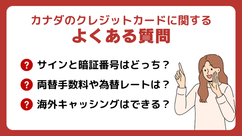 ここでは、カナダでのクレジットカード利用に関する基本的な疑問から実際の使用方法、注意点まで、よくある質問にお答えします。安心してカナダでのカードライフを楽しめるような、実用的な情報をまとめました。
