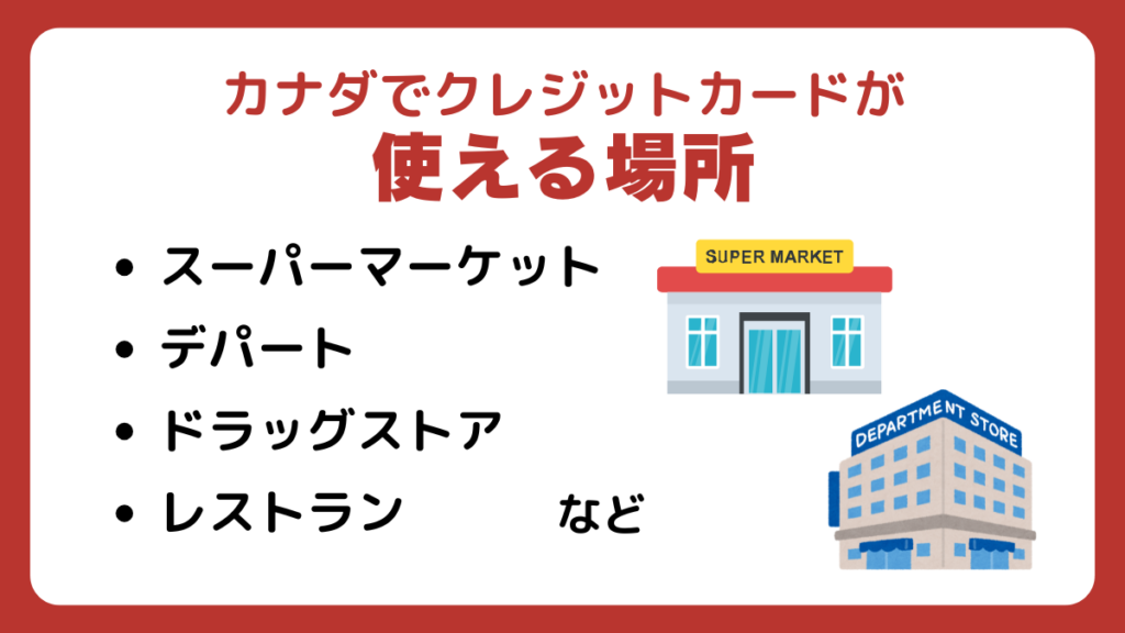 カナダは世界的にもキャッシュレス化が進んでいて、日常生活のほとんどの場面でクレジットカードが利用可能です。