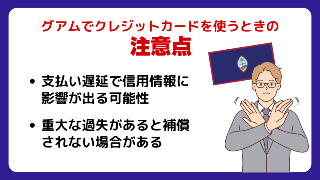 グアム滞在中は時差ボケや観光、移動の多忙さに加えて、インターネット環境の不安定さなどにより、クレジットカードの引き落とし日を忘れてしまうことがあります。