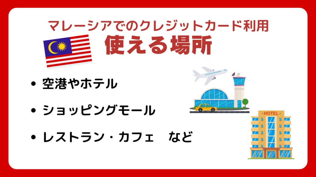 マレーシアでは以下のような場所でクレジットカードが使用可能です。