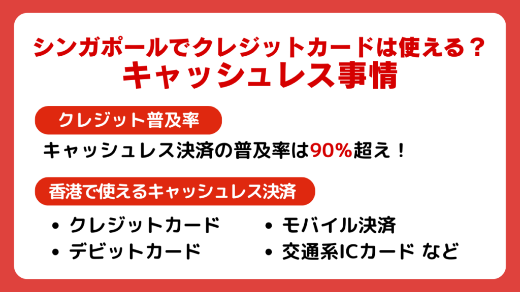 シンガポールではクレジットカードが非常に高い普及率で利用されており、現地ではキャッシュレス決済が主流となっています。本章では、クレジットカードの普及率や使える決済手段、対応している国際ブランドについて詳しく解説します。