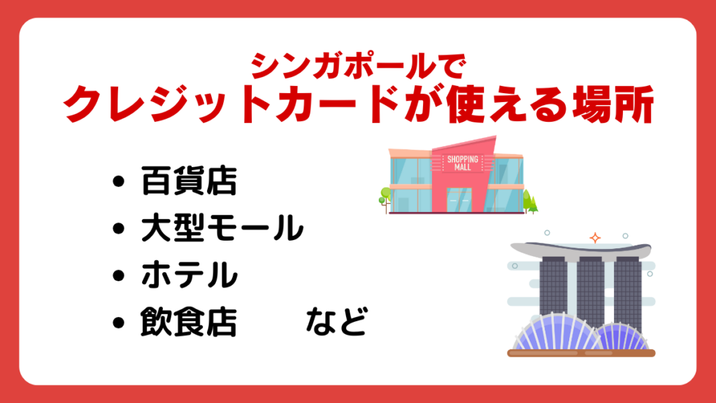 シンガポールでクレジットカードが使える場所は以下の通りです。